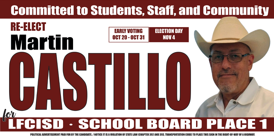 I am Martin Castillo, a candidate for the LFCISD Board. I am committed to unwaveringly supporting our teachers, students, transportation department, maintenance staff, police, administration, and every member of our district team.